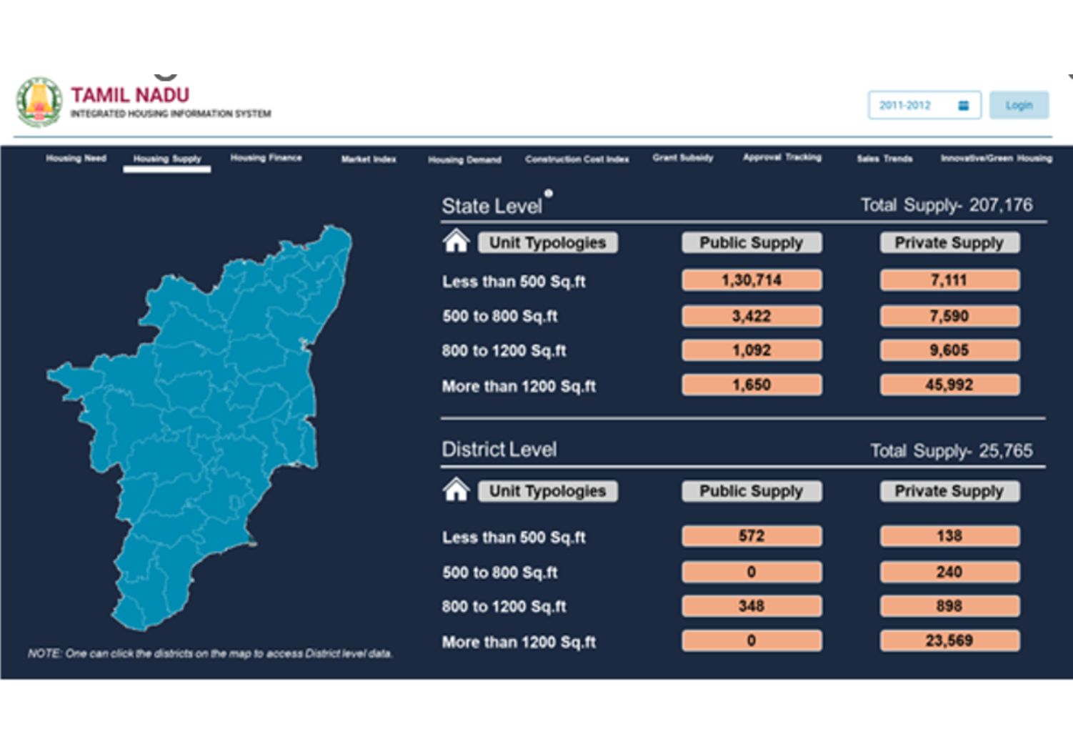 The World Bank/Tamil Nadu Urban Habitat Development BoardThe TNIHIS was conceptualised as an annual State of Housing Report and integrated housing dashboard for the Government of Tamil Nadu, to be operated by the Directorate of Housing as a policy support and decision-making tool.