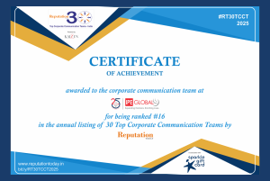 Team Corporate Communication, IPE Global ranked 16 among the Top 30 Corporate Communications Teams for 2026 by Reputation Today! We stand alongside industry leaders, recognised for our impact across responsibilities, budgets, campaigns, and social media.